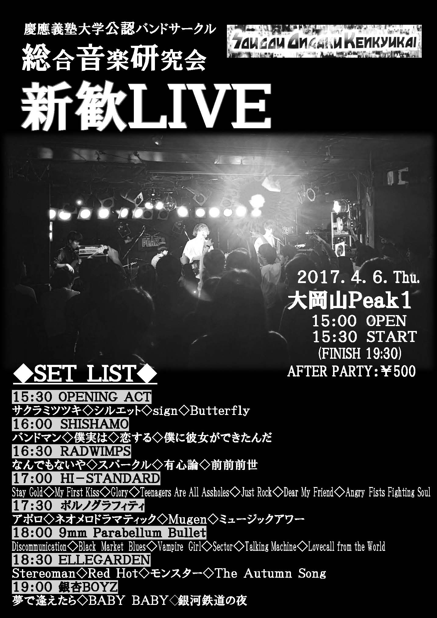 総音研から様々なジャンルで8バンドが集結! サークルの雰囲気がわかる、新歓期最大のチャンス!! これは絶対に見逃せないっ!!! >画像クリックで拡大 |
